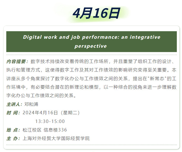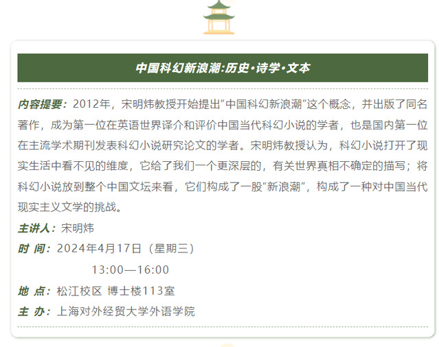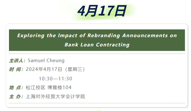 【上经贸大·科研】第八周学术活动预告