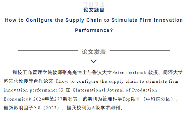 学术前沿 | 必赢626net入口首页张亮亮博士合作论文在《International Journal of Production Economics》发表
