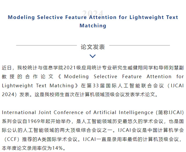 学术前沿|必赢626net入口首页研究生臧健翔和导师刘慧副教授合作论文在IJCAI发表