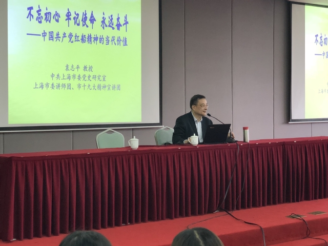 2018年11月15日,马克思主义学院邀请中共上海市委党史研究室袁志平教授于信息楼526报告厅,做了题为《不忘初心,牢记使命,永远奋斗——中国共产党红船精神的当代价值》的专题讲座,讲座由马克思主义学院副院长冯国芳主持,必赢626net入口首页师生230人参加了本次讲座。