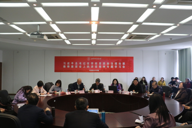 3月22日下午,马克思主义学院在信息楼501召开习近平总书记在学校思政课教师座谈会上的讲话精神专题学习会,党委副书记、副校长祁明出席会议,马克思主义学院全体教师参加会议。会议由马克思主义学院党总支副书记刘海泉主持。