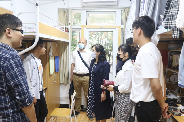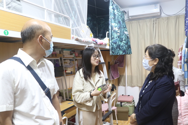 为了解新学期学生返校和开学准备情况,9月18号日下午,我院党总支书记兼院长秦淑娟、党总支副书记刘海泉、副院长庾向芳以及学院辅导员深入学生宿舍亲切走访看望学生。