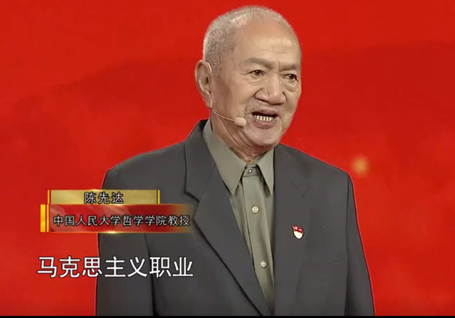 陈先达(1930.12.30—)男,江西鄱阳人,当代著名马克思主义哲学家、教育家,中国人民大学荣誉一级岗位教授,我国自己培养的第一批马克思主义哲学家。现任教育部社会科学委员会哲学部委员、中国人民大学习近平新时代中国特色社会主义思想研究院学术委员会主任,北京市社科联顾问、国际儒联荣誉顾问、中国历史唯物主义学会名誉会长等职。曾任中国人民大学哲学系主任、中国人民大学校务委员、校学术委员会主任、第三届国务院学位委员会哲学学科评议组成员、北京市哲学学会会长、中国历史唯物主义学会会长、全国高校思想政治理论课教学指导委员会委员。
