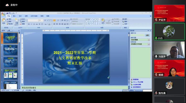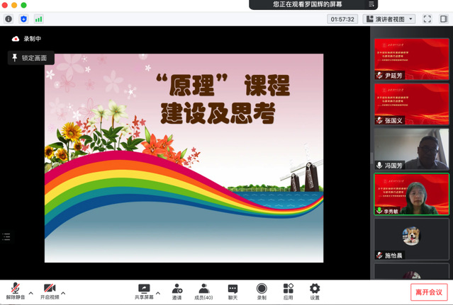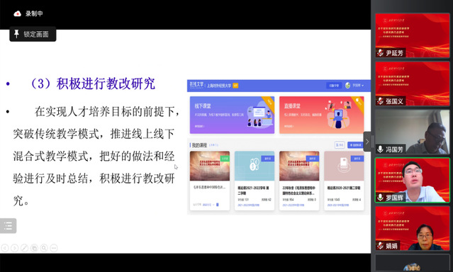 专题培训会交流汇报环节由学院副院长冯国芳主持,李秀敏、罗国辉、张国义、周霞、张耿庆、李欣等6位教研室主任就本学期课程建设、科学研究、教改理念以及未来工作的努力方向进行了汇报交流。