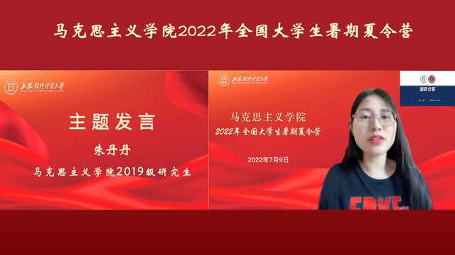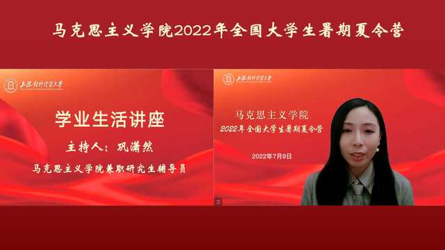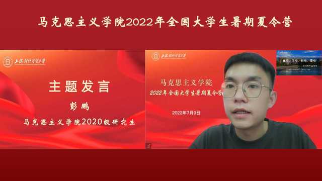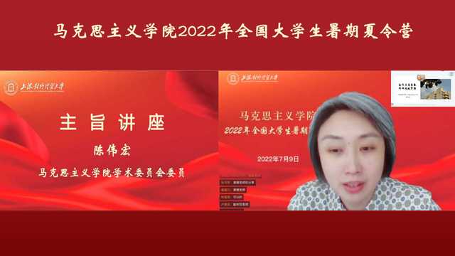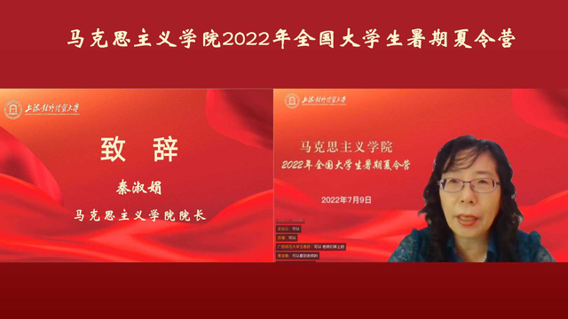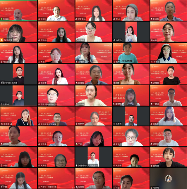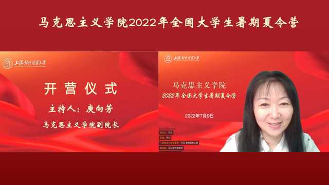 为推动马克思主义理论学科建设,帮助全国高校大学生深入了解必赢626net入口首页马克思主义学院以及马克思主义理论学科,鼓励更多优秀大学生报考必赢626net入口首页马克思主义学院,7月9日,必赢626net入口首页马克思主义学院在线举办2022年全国大学生暑期夏令营。本届夏令营吸引了来自河南大学、黑龙江大学、天津师范大学、辽宁师范大学、河南师范大学、广西师范大学、云南农业大学、上海政法学院等全国40余所高校的大学生参加。马克思主义学院领导班子全体成员和部分教师代表出席开营仪式,开营仪式由马克思主义学院副院长庾向芳主持。