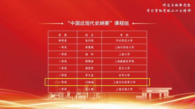 在2022年举行的上海高校思政课教师教学大比武上,一批优秀青年教师脱颖而出。我院教师刘晓海获得“中国近现代史纲要”课程组二等奖。