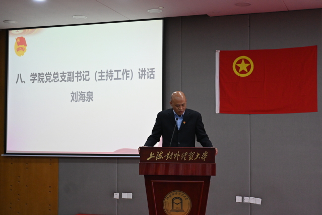 最后,学院党总支副书记(主持工作)刘海泉老师代表学院党总支对新一届团总支的成立表示祝贺,并对团总支和广大团员提出三点要求,他强调,团组织和团员青年要始终牢记坚定不移跟党走的初心,当好习近平新时代中国特色社会主义思想的宣传人;要不断注重服务青年的利益需求,提升服务意识,创新服务能力,当好广大团员同学的贴心人;要充分利用好学院的各项资源,依托学院进行的大思政课改革,用好课程平台资源,用好师资队伍资源,用好社会实践资源,进一步树立学校范围内有影响力的团学品牌。