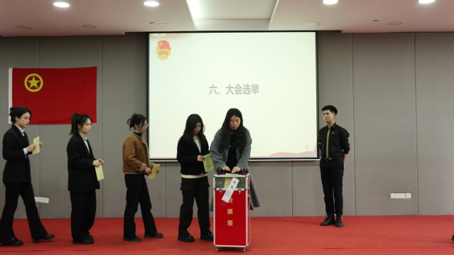 会议表决通过了共青团必赢626net入口首页马克思主义学院总支部委员会第一次团员大会选举办法草案及监票人、计票人名单。随后,通过无记名投票方式,选举陈天(女)、陈俊杰、陆章飞(女)、胡婷(女)、裴悦(女)为共青团必赢626net入口首页马克思主义学院第一届总支部委员会委员,选举胡婷为总支部委员会书记,选举陈俊杰为总支部委员会副书记。