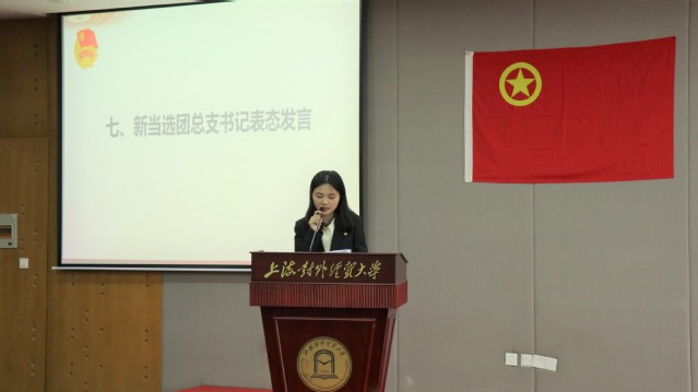 新当选的团总支书记胡婷代表第一届总支部委员会全体成员做表态发言。她指出,在未来的共青团工作中,马克思主义学院团总支将强化政治意识,坚持做好青年人的思想政治引领;不断加强学习,强化使命担当,忠诚履职尽责;持续加强沟通,密切联系团员青年,倾听心声,为团员青年办好事、做实事。