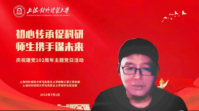 为庆祝中国共产党成立102周年,弘扬伟大建党精神,进一步深入学习贯彻习近平新时代中国特色社会主义思想,提高学生的科研能力,2023年7月1日下午,马克思主义学院教工第三党支部和学生党支部在线上共同举办庆祝建党102周年“初心传承促科研,师生携手谋未来”主题党日活动。教工第三党支部全体党员、学院全体研究生以及2023级新生线上参加活动。
