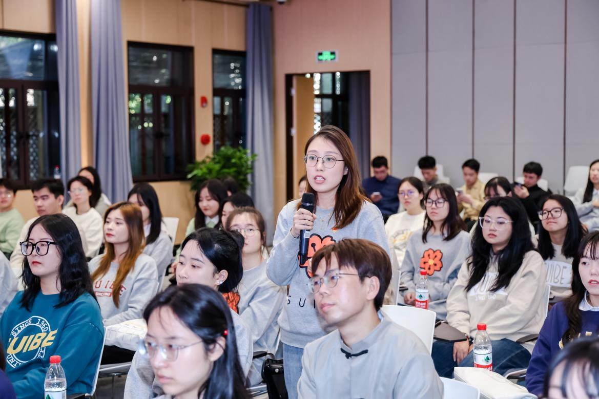 随后,庾向芳和同学们就课程开始时提出的三个问题进行了互动,同学们分享了自己的想法和感受,来自马克思主义学院的孟陆雅慧同学说,今天在龙华监狱看到了同学们演绎的龙华英烈,听了龙华烈士陵园的红色讲师们讲授他们的真实故事,深受感动,每个人的生命都只有一次,这些年轻的共产党员用生命捍卫了信仰。来自马克思主义学院的许可同学说,今天的这堂思政课终生难忘,通过沉浸式情景剧的演绎,让我们能够更深刻感受到革命先辈坚守理想,不怕牺牲的伟大精神,作为新时代的青年我们要向他们学习,担负起时代赋予我们的责任,走好我们的长征路。来自国际经贸学院的余天一同学说,如果有一台可以穿越时空的对讲机,我想跟这些牺牲的先烈们道一声感谢。我们今天的生活正如您们所愿,我们很幸福!庾老师表示,希望同学们能继承和发扬革命先烈的精神,传承红色基因,赓续红色血脉,在实现中华民族伟大复兴的实践中绽放青春之花。