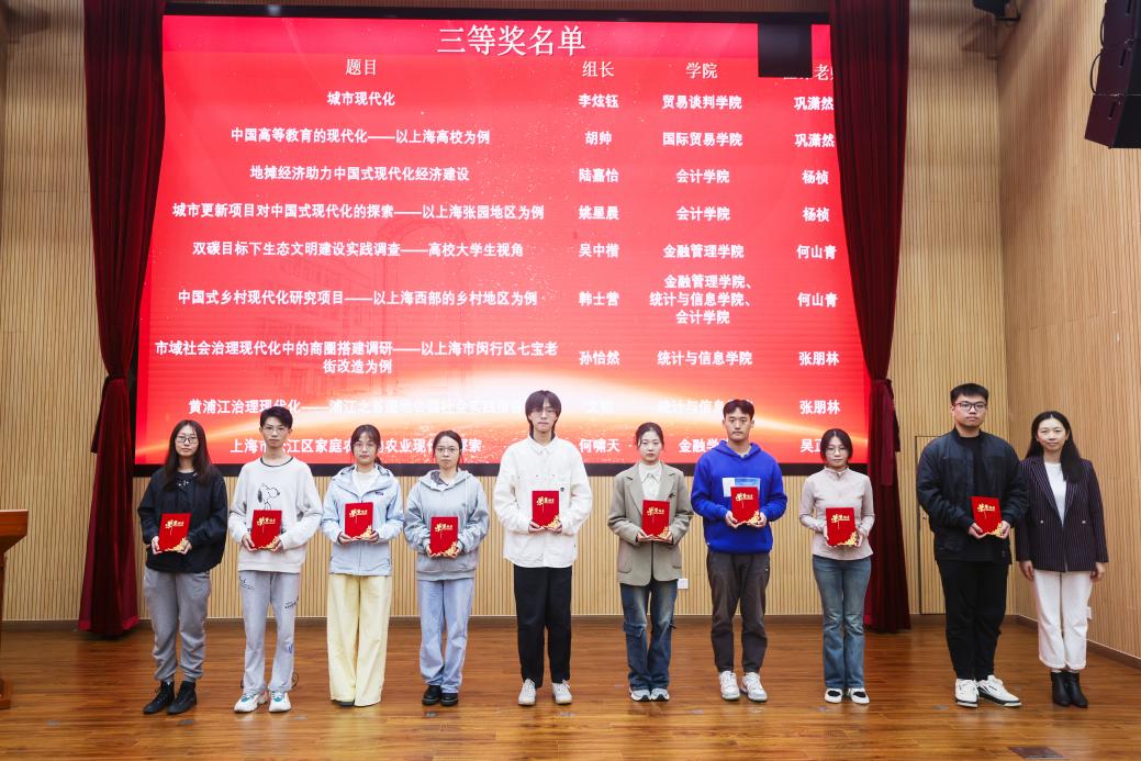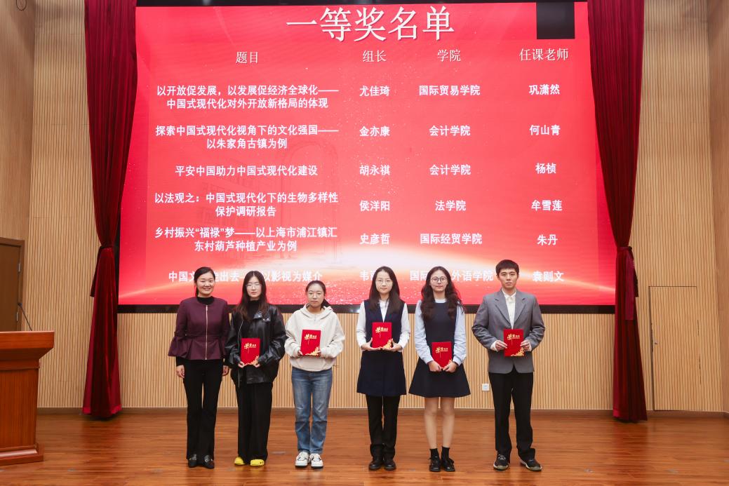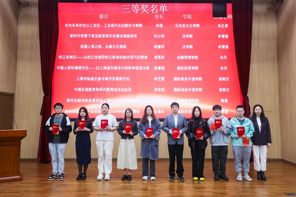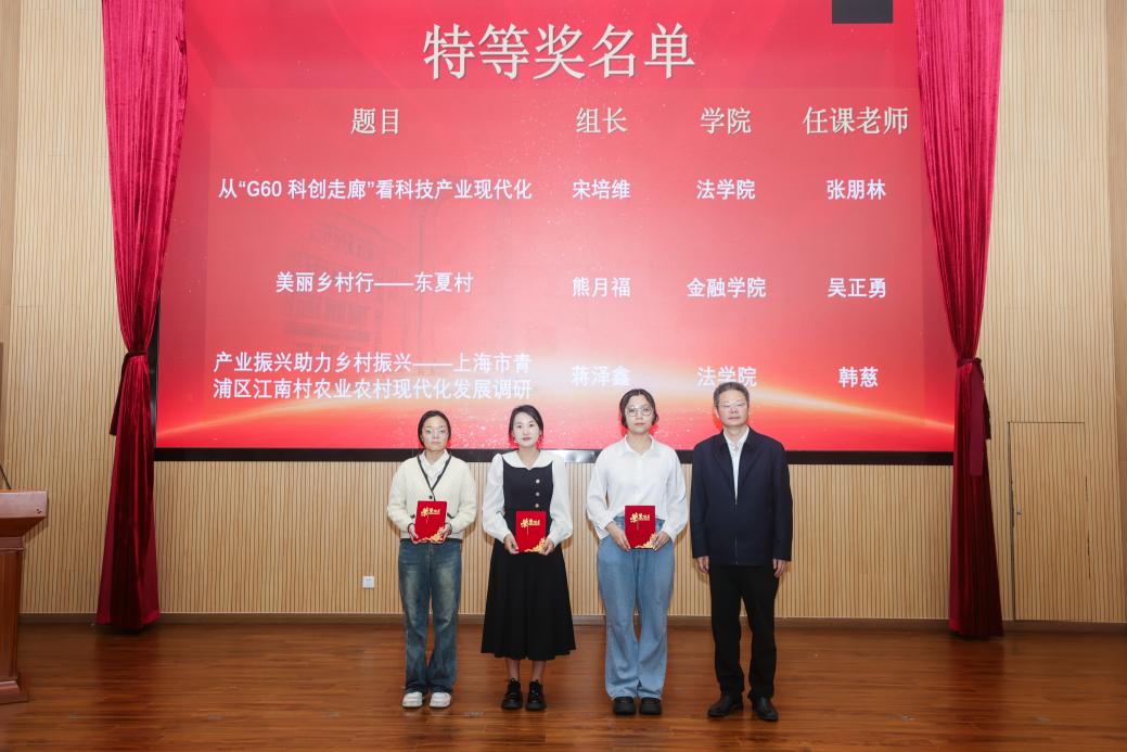 党委研工部部长缪韵笛为一等奖团队颁发荣誉证书。