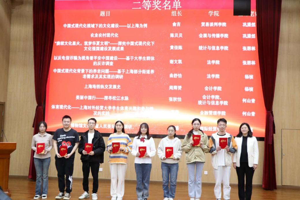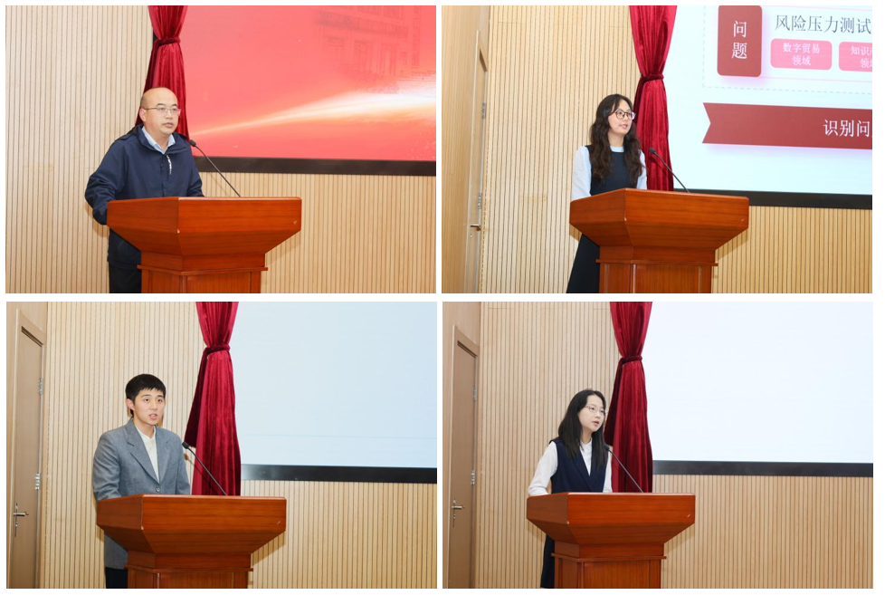 分论坛二由马克思主义学院党委副书记张帅主持,国际经贸学院单梦晗、会计学院胡永祺、法学院侯洋阳分别就“以开放促发展,以发展促经济全球化——中国式现代化对外开放新格局的体现”“平安中国助力中国式现代化建设”以及“以法观之:中国式现代化下的生物多样性保护”等主题进行了分享。
