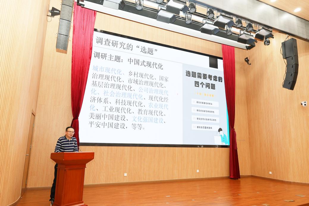 指导教师交流环节,马克思主义学院吴正勇副教授分享了自己对于研究生国情调研的指导和看法,强调国情调研是研究生培养的重要环节,希望同学们能够珍惜机会,调研为契机,不断提高自己的综合素质。
