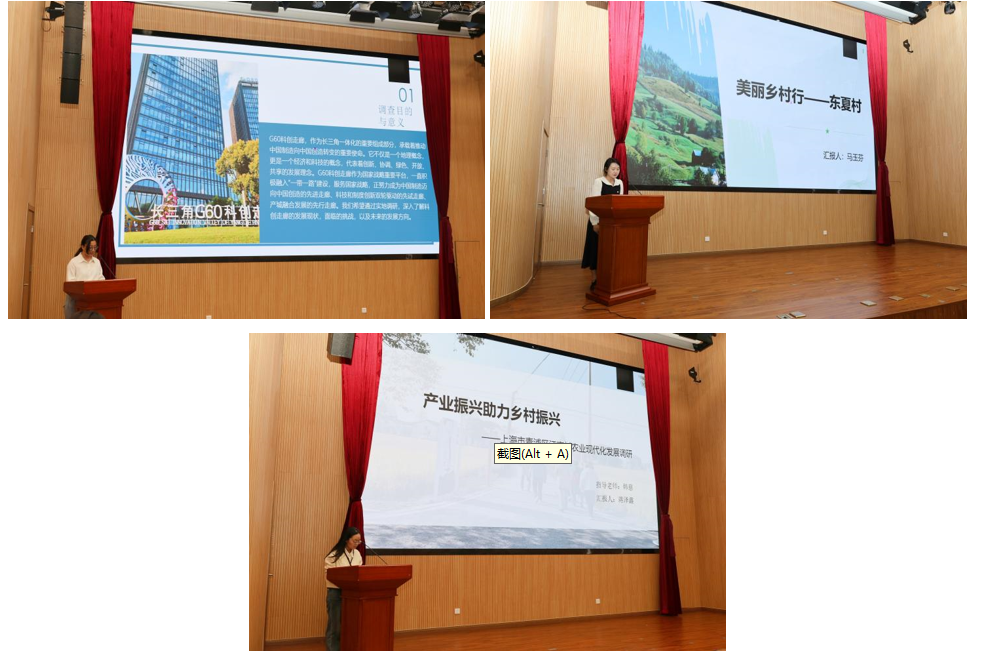 开幕式后进入分论坛环节。分论坛一由马克思主义学院副院长罗国辉主持,法学院宋培维、马克思主义学院马玉芬、法学院陶迎楠分别围绕“从‘G60科创走廊’看科技产业现代化”“美丽乡村行——东夏村”以及“产业振兴助力乡村振兴——上海市青浦区江南村农业农村现代化发展”等主题进行了汇报,通过详实的数据和生动的案例,展现了各自调研的成果与思考。