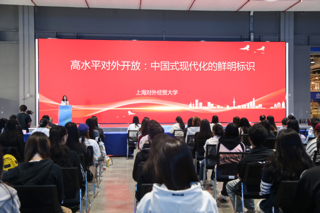 这堂专题大思政课分为四个环节:“高水平对外开放:中国式现代化的鲜明标识”“进口博览会:实践高水平对外开放的最好载体”“海外望神州:我眼中的中国对外开放”以及“勇担历史责任:加快推进贸易强国建设”。
