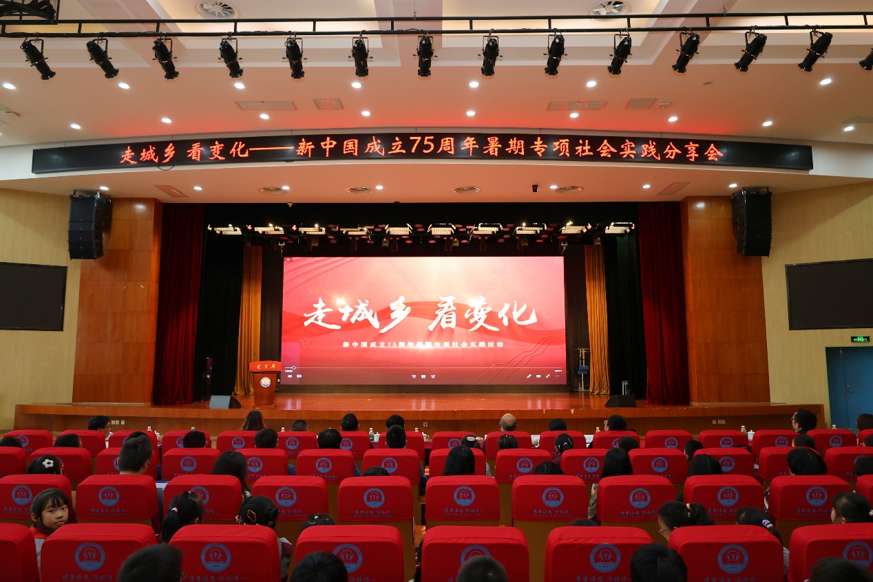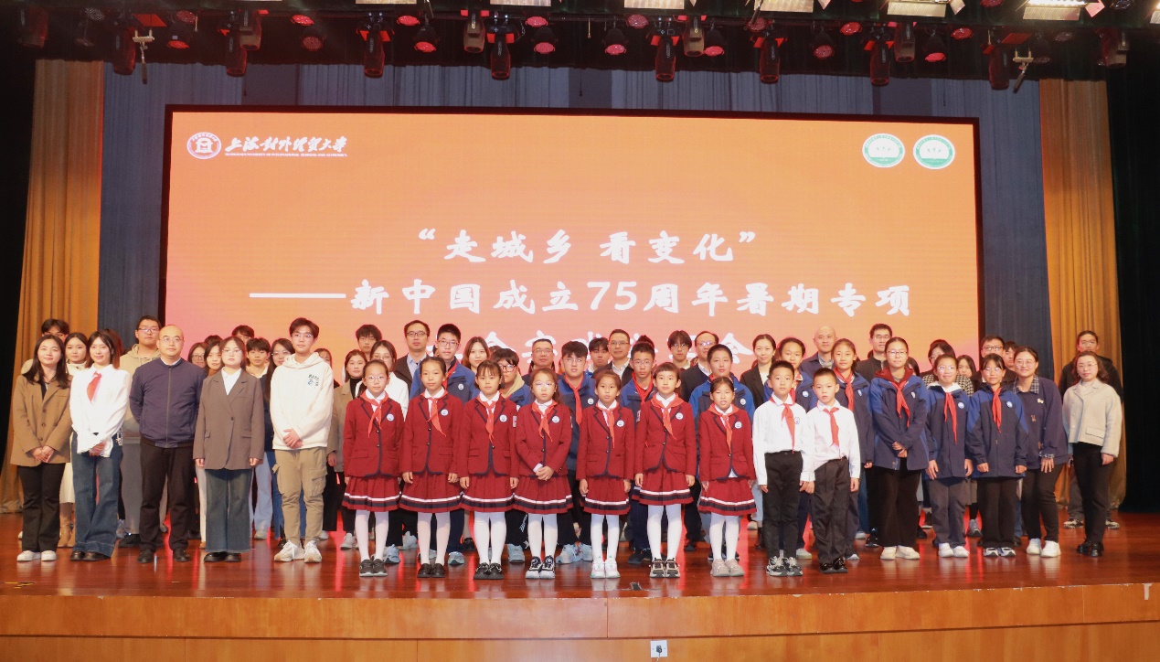 11月20日,由必赢626net入口首页校团委与马克思主义学院联合举办的“走城乡,看变化”——新中国成立75周年暑期专项社会实践分享会在必赢626net入口首页附属松江实验学校思源剧场顺利举办。必赢626net入口首页副校长徐永林、校教务处处长朱建明、校党委学工部副部长、团委书记司徒力云、马克思主义学院党委书记刘海泉、马克思主义学院党委副书记张帅、马克思主义学院副院长罗国辉、松江区教育局宣传德育科副科长孙荟涵、上经贸大附校校长陈伟平、上经贸大附校花园分校专职副书记高丽红、上经贸大附校及花园分校副校长程栋出席会议。会议由张帅主持,社会实践大中小学生团队代表及喀什大学实践团队师生代表线上线下共同参与分享会。