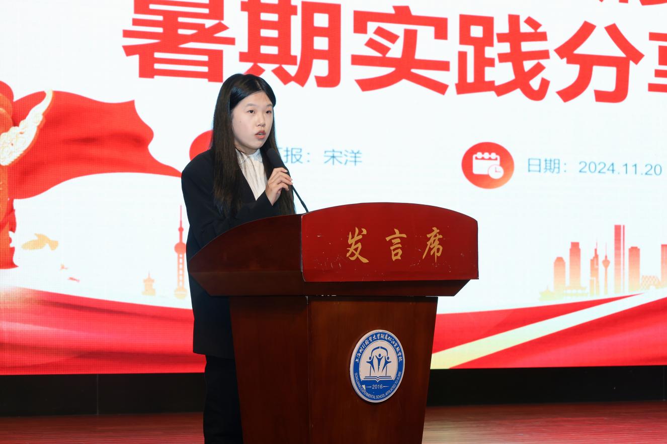 在暑期专项社会实践团队代表分享环节,上经贸大附校花园分校指导老师唐懿懿表示,实践是开展思政课的重要途径,附校开展的暑期专项实践活动,让学生通过各类调查、实地参观等方式去了解新中国成立以来,我国在各领域发生的深刻变化,感受祖国的发展,使他们发自内心地对中国和中华民族产生自豪感和归属感,从而坚定使命感和责任感,成为担当民族复兴大任的时代新人。在活动中让他们将课堂所学的理论知识与现实生活所结合,既巩固了所学,又对习近平新时代中国特色社会主义思想有了更全面的认识。