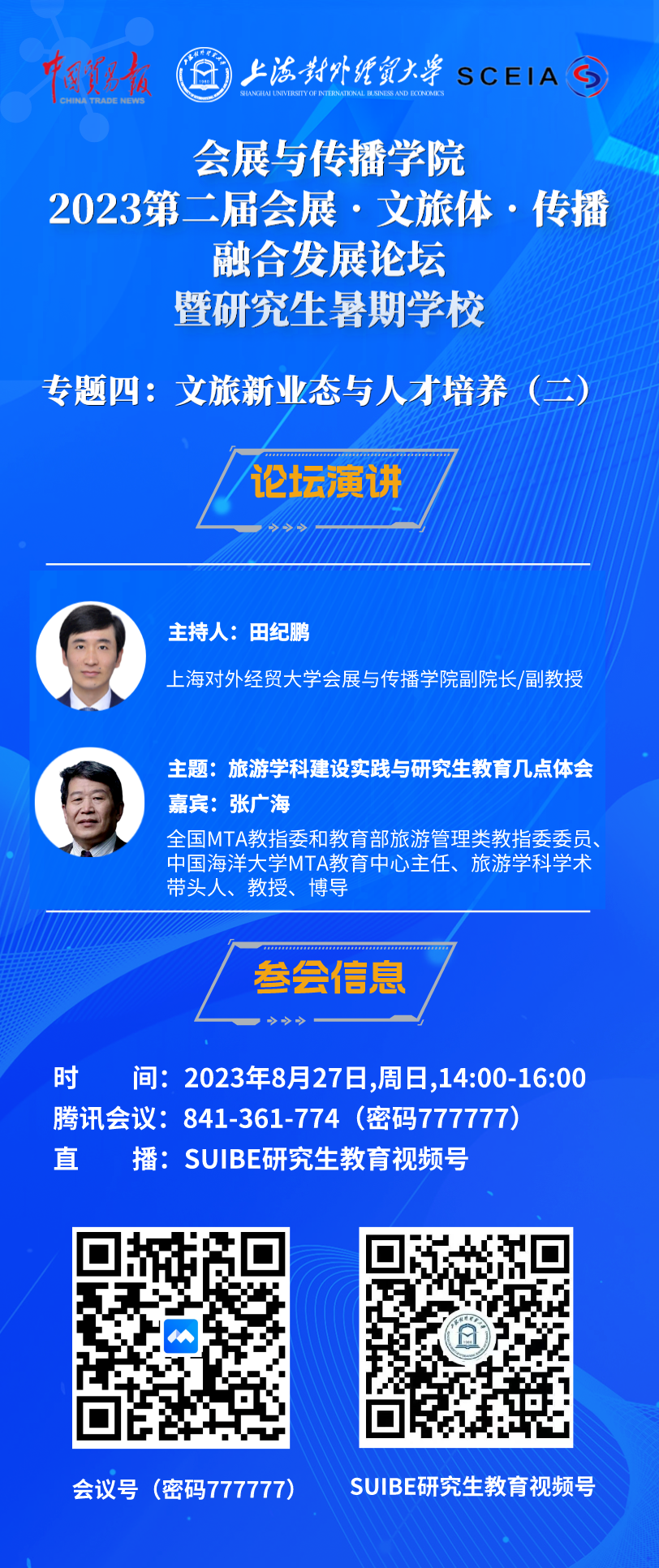 会展与传播学院2023第二届会展·文旅体·传播融合发展论坛暨研究生暑期学校专题四:文旅新业态与人才培养(二)