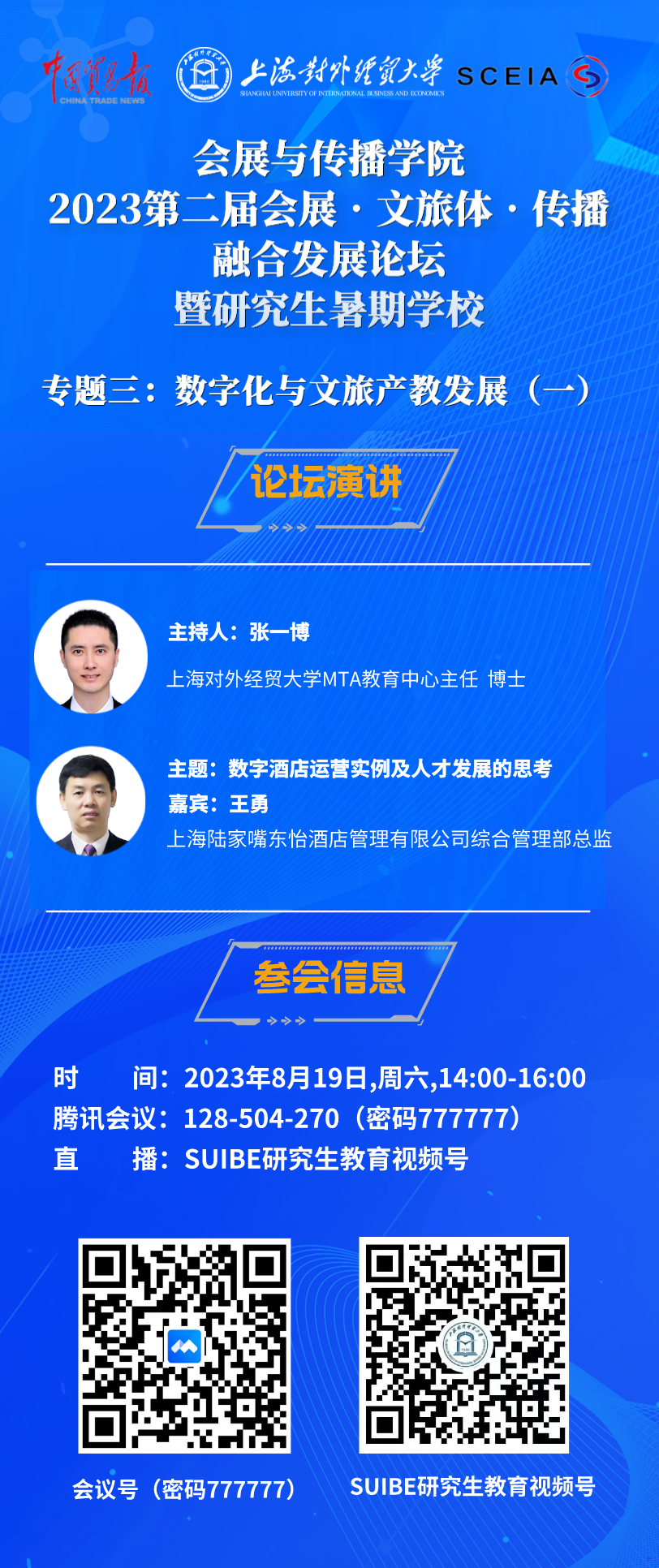 会展与传播学院2023第二届会展·文旅体·传播融合发展论坛暨研究生暑期学校专题三:数字化与文旅产教发展(一)