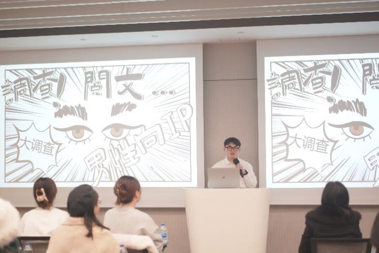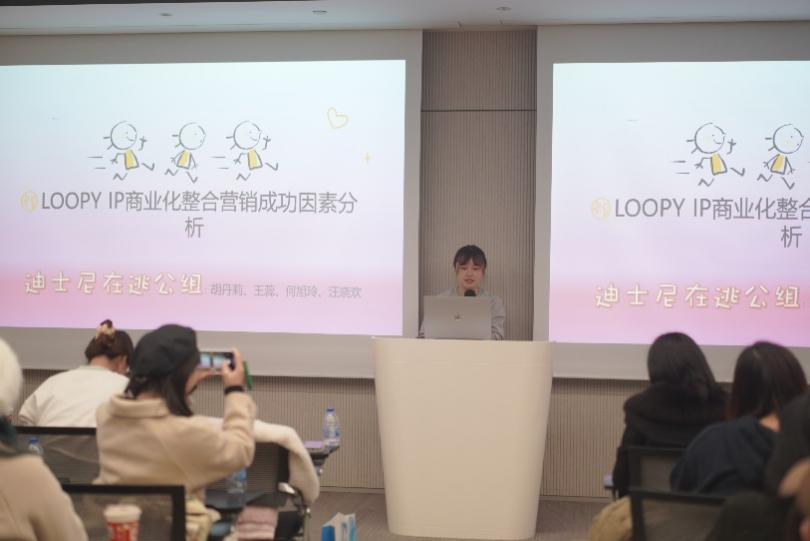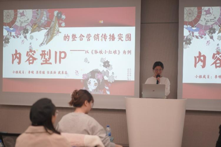 案例议题探讨环节,同学们向阅文集团的评委老师们汇报了之前布置的议题讨论成果,三个主题分别是“内容型IP的整合营销传播突围——以狐妖小红娘为例”“LOOPY 商业化成功原因分析”和“男性向IP大调查”。