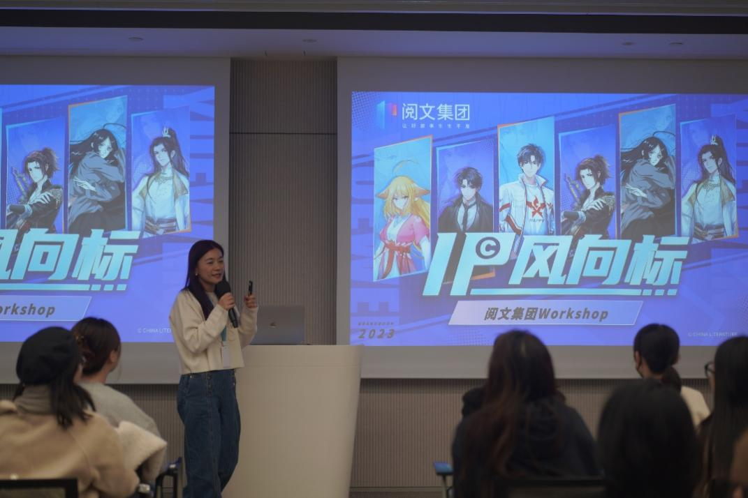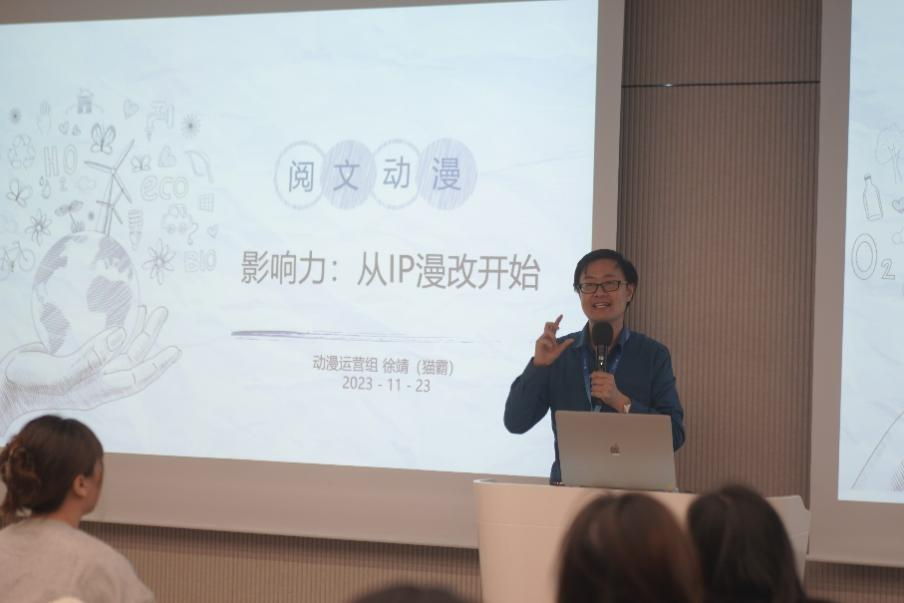 阅文集团动画业务部动画运营组徐靖趁热打铁,向师生们详细讲解了IP是如何运营、变现及发展的,阅文集团如何通过运营宣发、商业化等方式打造衍生IP矩阵,并从行业角度分析内容型IP运营的现状和趋势。