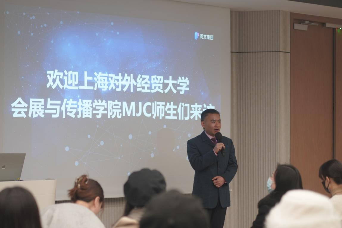 王治年首先邀请MJC教育中心主任雷霖向阅文集团的员工介绍了学校、学院以及MJC项目概况,雷霖老师感谢阅文集团安排此次活动,为师生提供近距离了解企业和行业的机会,并表达加强校企合作的期望。