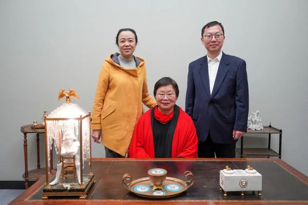 汪荣明在古北校区综合楼5楼贵宾厅会见孙建伟女士,并对孙建伟女士在上经贸大博物馆首展筹建过程中所提供的支持表示感谢。孙建伟女士对首展的瓷器进行了介绍分享,并表示希望通过欧洲的瓷器让中国人了解到中国瓷器对欧洲贸易、经济和社会发展的影响,也加深上经贸大学生对于瓷器文化和对外贸易的理解。