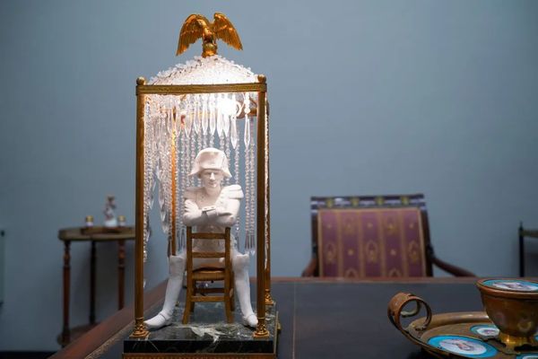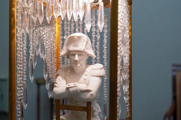 在上经贸大博物馆“拿破仑”书房展厅,孙建伟女士点亮了19 世纪后期法国用四种材料(铜、瓷、玻璃和大理石)创新设计制造的工艺品——拿破仑雕像台灯,大家共同见证了这盏百年之前法国皇室台灯的点亮。