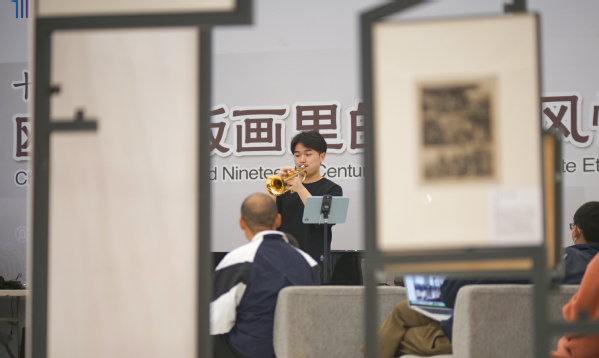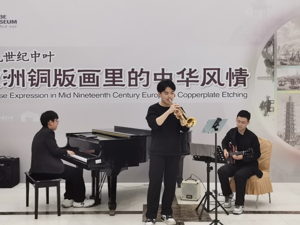 演出现场,乐团以精湛的表演技艺与现场的展陈的铜版画作相呼应,展现出艺术之间的融合碰撞,也为现场的观众演绎了一场精彩的爵士乐演出。