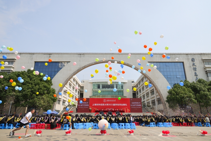 On June 25, SUIBE’s 2021 graduation ceremony was held at the South Square of the Computing Labs Building. More than 1,700 graduates gathered online and offline to witness the important moment of graduation and embrace a new journey of life. Present at the ceremony were Chairman of the University CouncilYin Yao, SUIBE president Wang Rongming, Vice Chairwoman of the University Council and Chairwoman of the Commission for Discipline Inspection Xu Mei, Vice Chairman of the University Counciland SUIBE vice president Qi Ming, vice presidents XuYonglin, Wu Zhong, Yu Xuemei, as well as leaders and teachers of all schools and departments.Vice President Qi Ming presided over the ceremony.