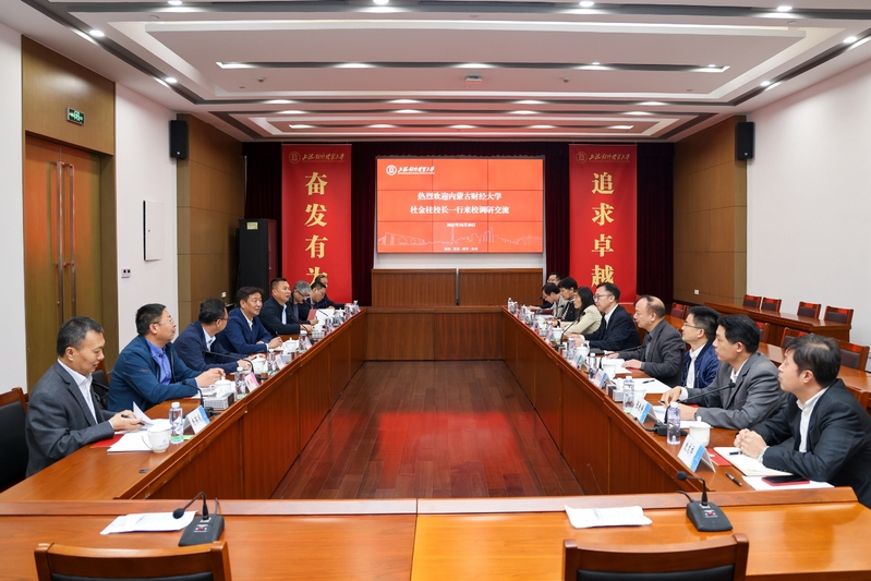 Du Jinzhu, President of Inner Mongolia University of Finance and Economics, led a delegation to visit SUIBE for research and exchanges on October 20. SUIBE President Wang Rongming met with him and presided over a symposium. Leaders of relevant departments of the two universities joined discussion and exchange activities.