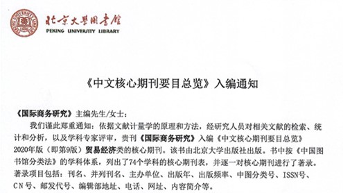 《国际商务研究》再次入选中文核心期刊要目和人大复印资料重要转载来源期刊