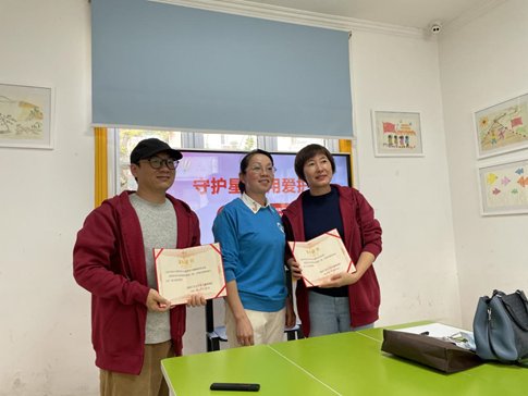 上海市徐汇区三叶草儿童康健园成立于2007年5月,是徐汇区民政局下属的一家为自闭症儿童及其家庭提供辅导与康复训练的专业机构。现有专业教师30余名,学生50余名。罗老师代表康健园热情接待了志愿者老师们。她带领两个支部志愿者参观了园区,并以讲座形式为大家普及了自闭症相关知识,呼吁大家多关注“来自星星的孩子”。罗老师还代表康健园向两个支部颁发了捐赠证书。此次献爱心活动两个支部党员共捐款1903.25元,并按康健园的要求购置了所需教学器具。