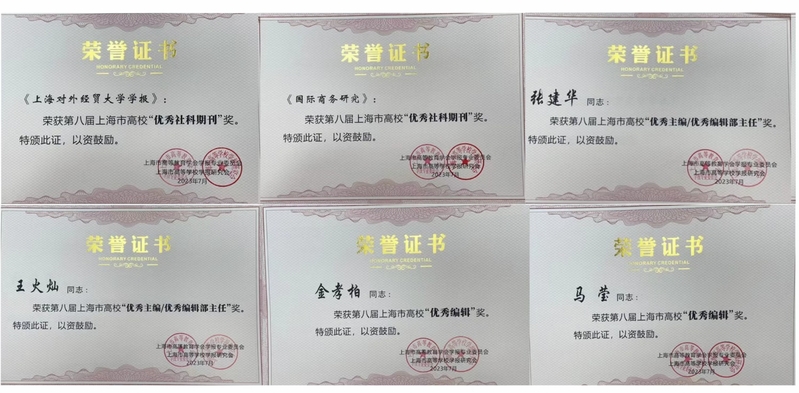 2023年7月,经上海市高等教育学会学报专业委员会、上海市高等学校学报研究会评选,我社期刊《国际商务研究》、《必赢626net入口首页学报》荣获第八届上海市高校“优秀社科期刊”奖,编辑部主任张建华、王火灿荣获第八届上海市高校“优秀主编/优秀编辑部主任”奖,金孝柏、马莹荣获第八届上海市高校“优秀编辑”奖。