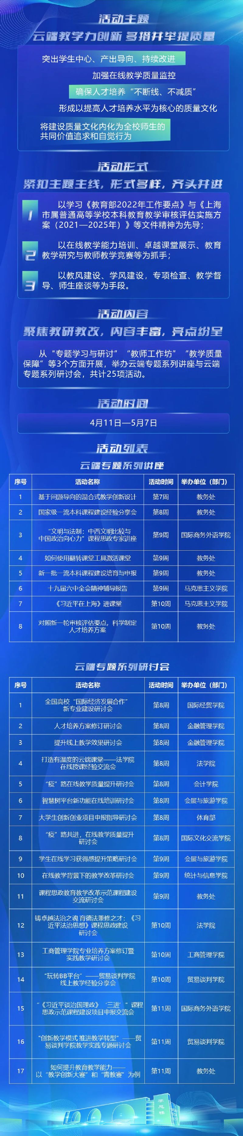 为进一步确保线上教学质量和实效,深入贯彻《教育部关于加快建设高水平本科教育全面提高人才培养能力的意见》(教高〔20182号),推进质量文化建设,加快形成高水平人才培养体系,健全教学质量保障长效机制,学校近期组织开展第二届“质量文化建设月”活动。