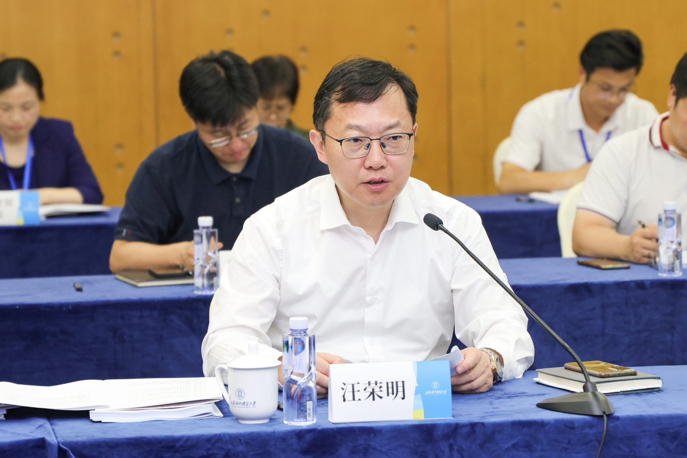汪荣明致辞,他对评建指导专家组、上海市教育委员会、上海市教育评估院一行莅临指导表示热烈欢迎和衷心感谢。他就学校新文科、新工科建设,“1+1+X”复合型人才培养新模式,文文交叉融合,文理交叉融合,现代产业学院等方面进行了详细介绍。他强调,开展新一轮本科教育教学审核评估工作,是主动适应高等教育转段发展需求,落实“以本为本”“四个回归”时代使命,引领学校内涵发展、创新发展、特色发展的有效抓手。学校将全面研读、认真理解专家组提出的意见建议和具体要求,扎实做好各项整改任务的落实工作。