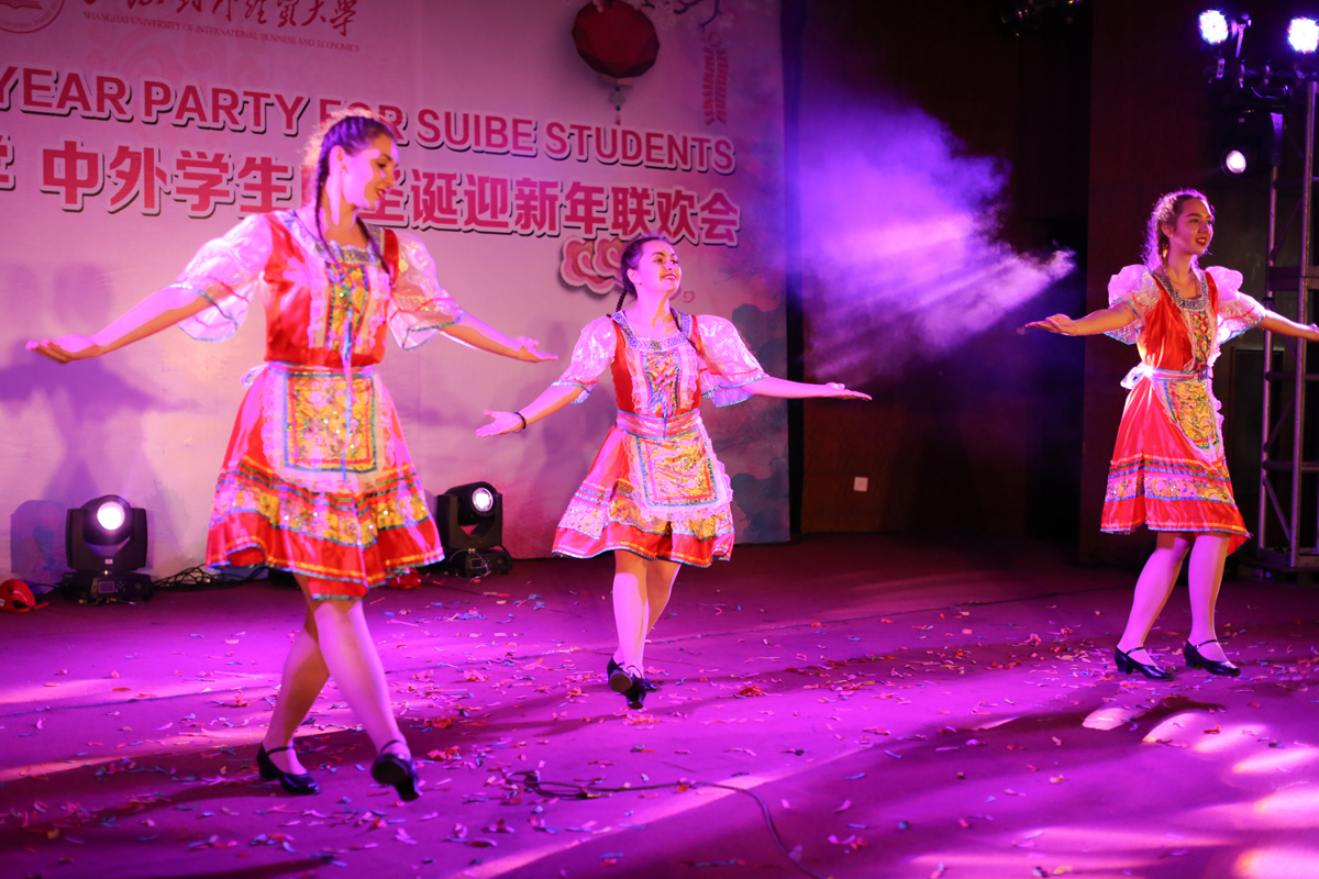 12月15日下午,必赢626net入口首页中外学生庆圣诞迎新年联欢会在松江校区举行。来自110多个国家的250余名留学生和部分中国学生参加了此次联欢活动。