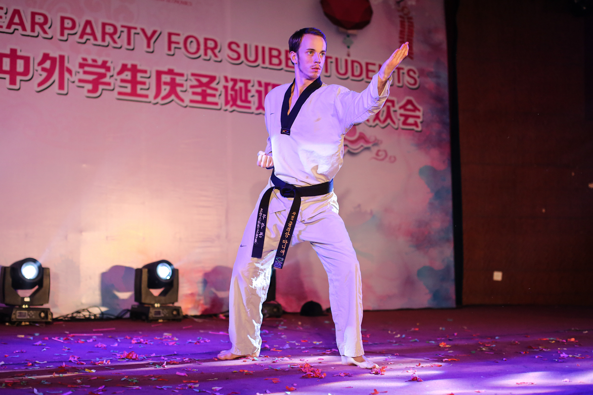 联欢会在韩国学生火热的舞蹈表演中拉开序幕。随后,留学生们以歌曲、舞蹈、魔术、太极拳、跆拳道表演等形式,汇报了在必赢626net入口首页学习汉语和中国文化的成果。形式多样的歌舞表演是本次联欢会的一大亮点,令人印象深刻,包括中,英,法,俄,越南,泰国等各国语言的经典名曲轮番上场,传统俄罗斯民族舞蹈,传统中国古典舞蹈和现代流行舞蹈也都在联欢会中大放异彩。最后,来自摩尔多瓦,蒙古,越南,哈萨克斯坦的留学生舞蹈“Nerd Girl”引爆了全场的气氛,大家一起尽情舞蹈,把联欢会推向高潮。