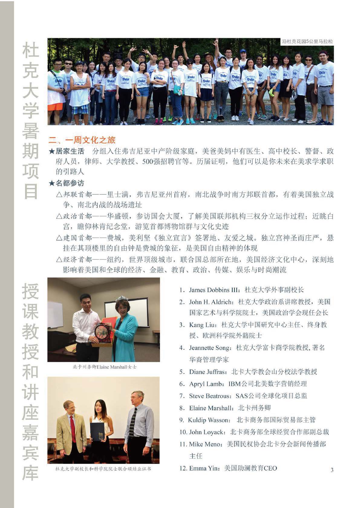 2.2 《美国经贸和创业创新》系列讲座由杜克大学商学院的教授们领衔主讲。讲座内容包括美国政治经济、美国商业创新、美国公司法、中美贸易、北卡全球商贸战略、中国企业在美国、美国民权运动、美国宗教信仰与社会生活、华人在美创业等。