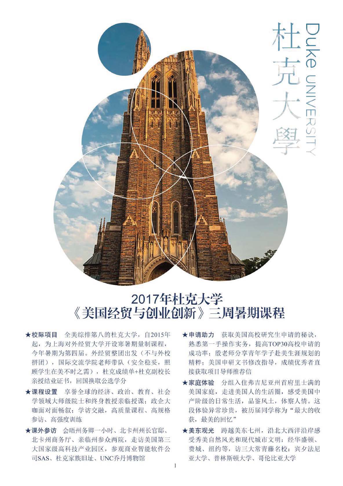 2017年暑期赴美国杜克大学学习之旅项目简介