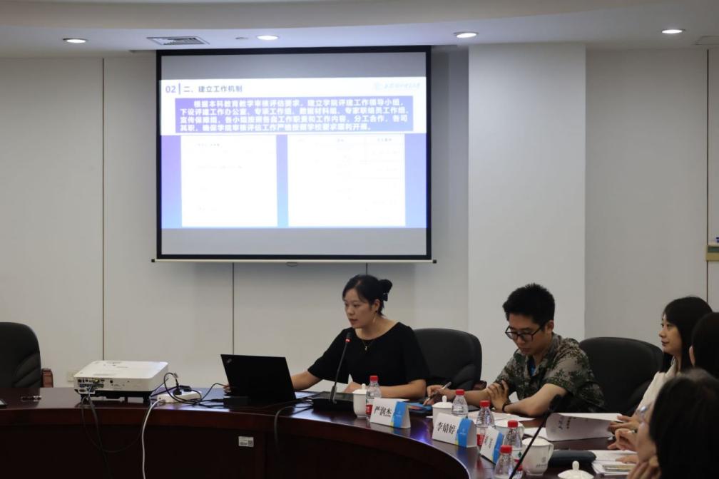 虞娅娜围绕本科基本情况、建立工作机制、全员全程参与、推进专项行动、以评促建促改等方面汇报了学院审核评估自评自建情况,强调学院将整个审核评估工作作为促进学院本科教育教学质量的手段和途径,始终以积极的风貌和良好的精气神来迎接整个审核评估工作。