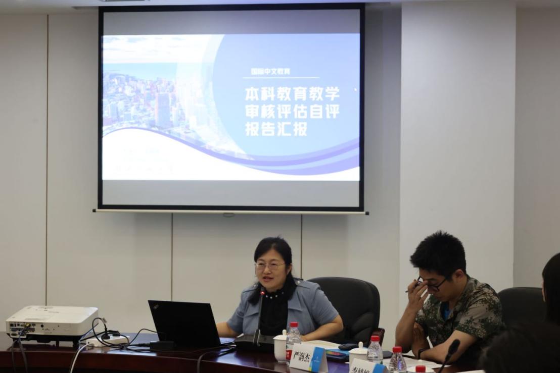 王艳艳紧扣办学方向和本科定位、培养过程、教学资源与利用、教师队伍、学生发展、质量保障和教学成效等七项审核评估指标汇报了学院审核评估自评报告,她详细阐述了学院“一专四能”人才培养目标和“三圈四阶五维”的人才培养路径,全力促进学院本科教育教学审核评估工作。