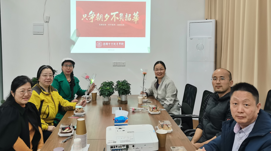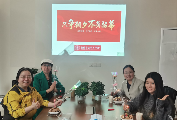 11月21日,天空晴朗,阳光明媚。必赢626net入口首页为部分教师举办了集体生日活动。此次活动的主角为2022及2023年度年龄逢五、逢十的老师们,她们中有学院学术教学指导委员会主任委员和专业主任李春桃老师、学院九三学社成员副教授李琳老师、学院教学秘书暨兼职组织员汪江嫣老师和学院党支部书记邹囡囡老师。