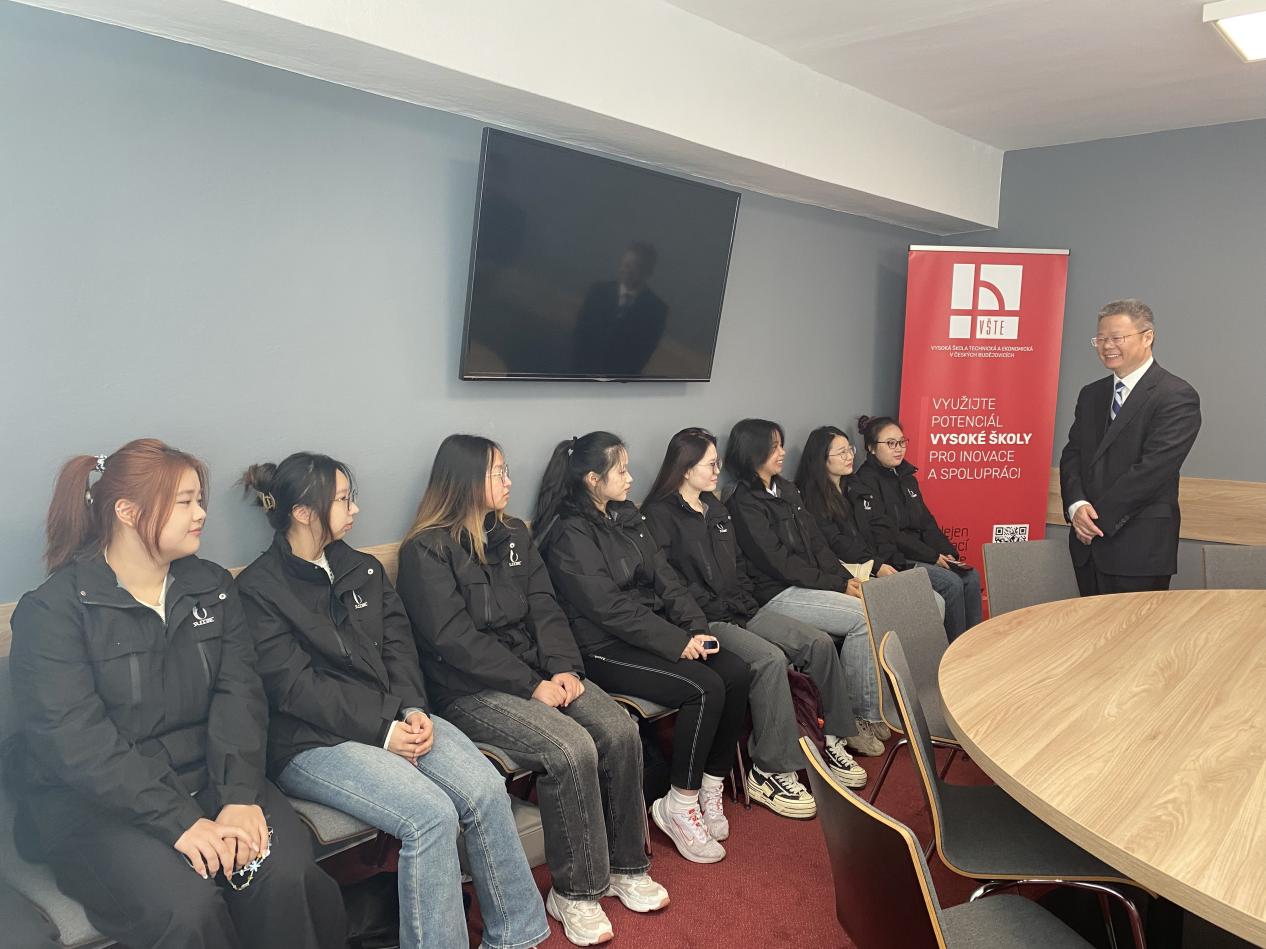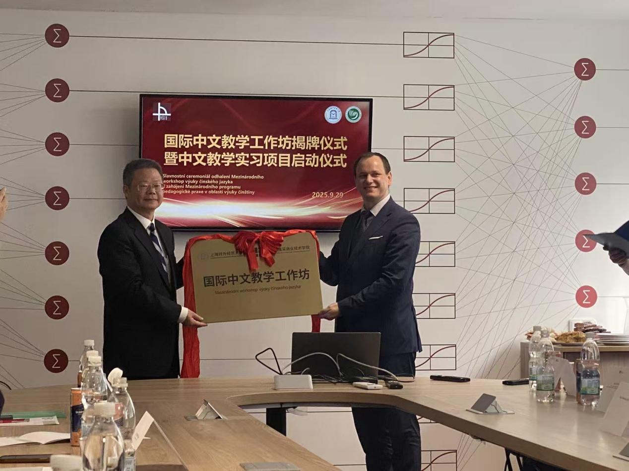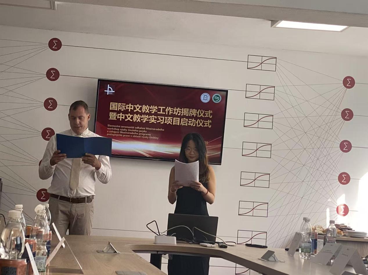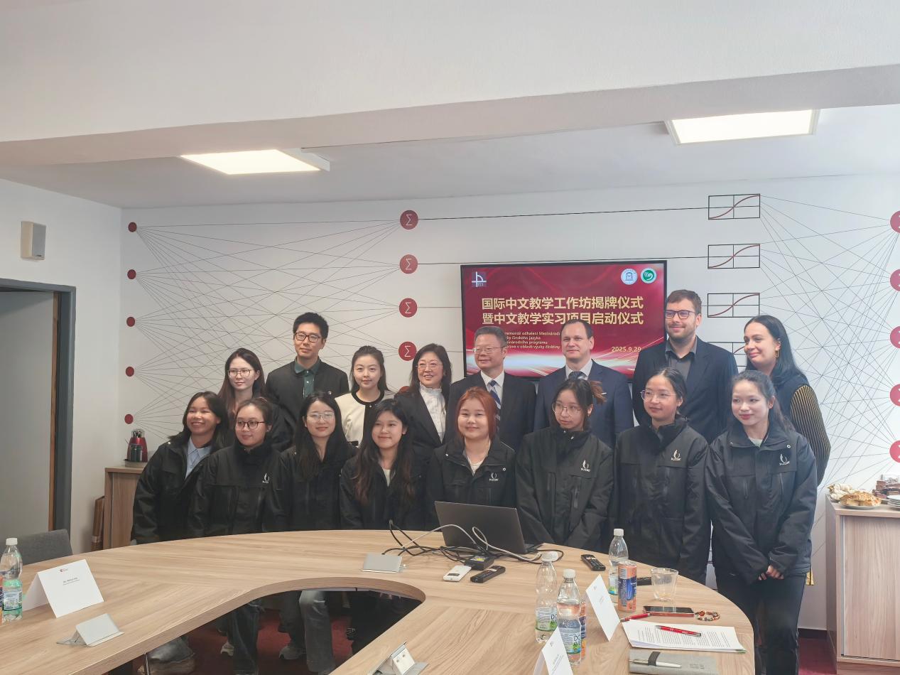 捷克时间9月29日上午,国际中文教育工作坊揭牌仪式暨中文教学实习项目启动仪式在捷克布杰约维采商业技术学院隆重举行。校党委副书记、纪委书记章益国一行,捷克布杰约维采商业技术学院校领导团队,孔子课堂中方负责人郝文钧,必赢626net入口首页2025年捷克海外实习团队全体师生共同出席仪式。仪式由必赢626net入口首页2025届毕业生、孔子课堂志愿者周梓腾,当地大提琴家瓦兹拉夫共同主持。
