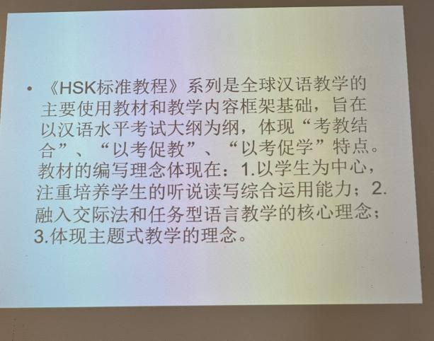 当地孔子课堂的公派教师唐老师《真实性原则与HSK教学》的讲座,则进一步为实践教学指明方向。从教学理念的解读到落地方法的分享,让海外实习志愿者们清晰认识到:好的中文教学,需贴近生活需求、适配学员背景,才能让语言真正成为沟通的桥梁。
