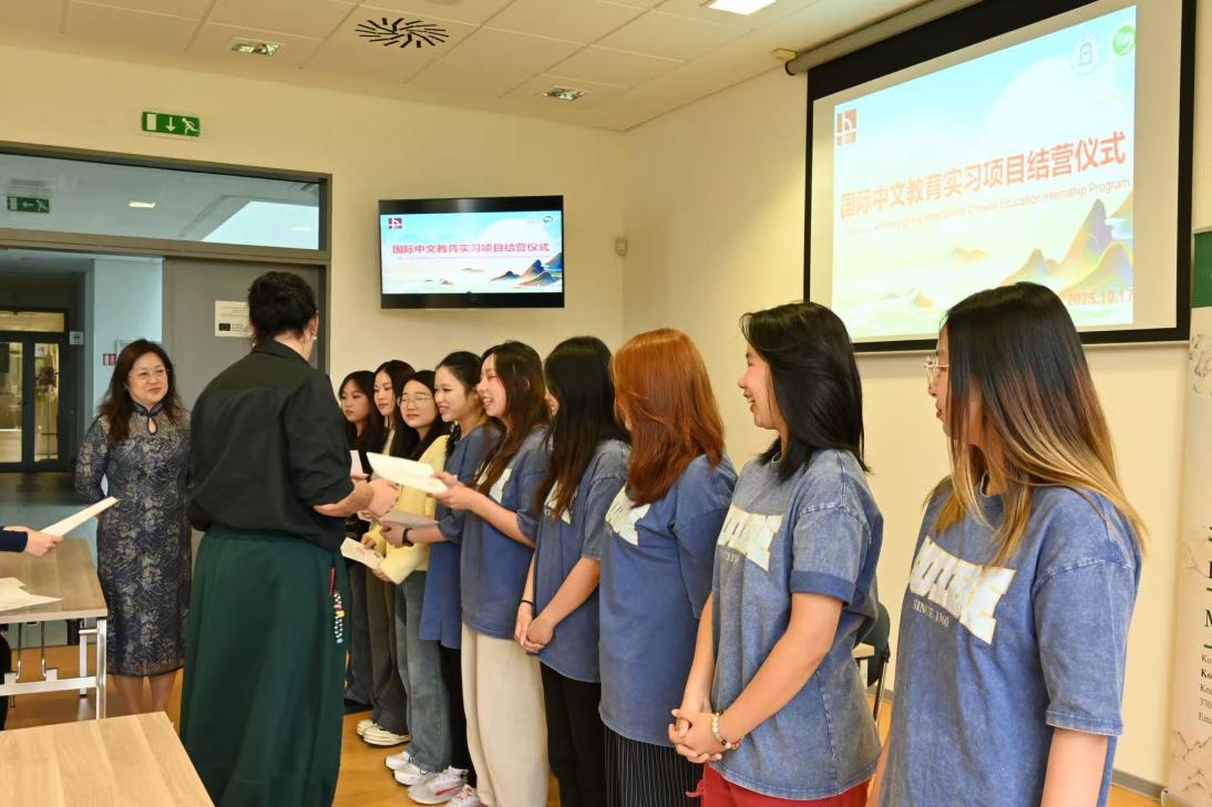 证书接过手的那一刻,同学们深知,这不是终点,而是新的起点。大家在布杰约维采这片土地上浇灌的汉语之花,必将带着母校65周年的校庆祝福,在国际中文教育的土壤里继续绽放。