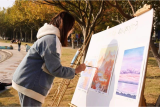 文化市集开市不到半个小时,“校园文创”的摊位前就排起了长队。摊位上不仅摆放了学校相关的文创产品,自助棉花糖体验也唤醒了师生的童心。学生创业团队梦享咖啡摊位上,柿子口味的咖啡已经售罄,小熊造型的咖啡让人惊呼为艺术品。“这是我们新开发的咖啡产品”,摊主笑盈盈地介绍着。思源湖北岸,十几幅油画作品正在展出,负责人正在指导体验者面朝湖边写生。写生的同学看着风景,没想到自己也成为一道风景。