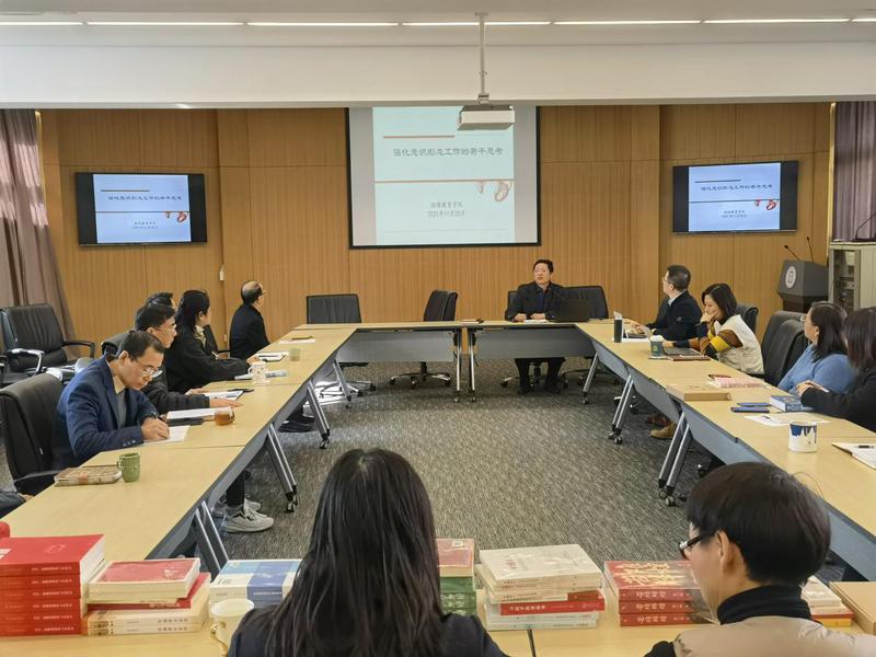 1125日,学院直属党支部在博观楼310会议室召开党员扩大大会,学习研讨《中共中央关于党的百年奋斗重大成就和历史经验的决议》。会议旨在深入学习贯彻党的十九届六中全会精神,进一步深入开展党史学习教育。党支部全体党员和教职工代表参加会议,会议由党支部书记李少丹主持。