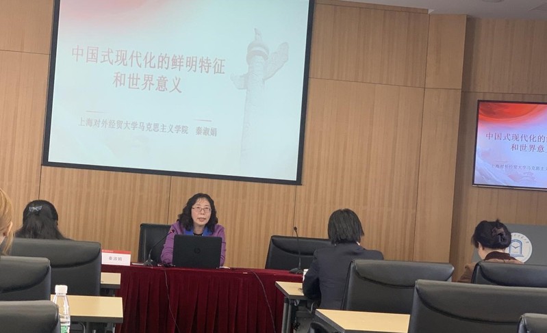 秦淑娟教授作了题为“中国式现代化的鲜明特征和世界意义”的讲座,从中国式现代化的内涵与特征、本质要求和目标、世界意义三个方面,与大家交流了想法和思考。她指出,中国式现代化是中国共产党领导的社会主义现代化,既有各国现代化的共同特征,更有基于自己国情的中国特色。未来五年是全面建设社会主义现代化国家开局起步的关键时期,需要集中精力完成7个主要目标任务。中国式现代化新道路重塑了现代化的路径,为广大发展中国家的现代化道路提供了全新样本。